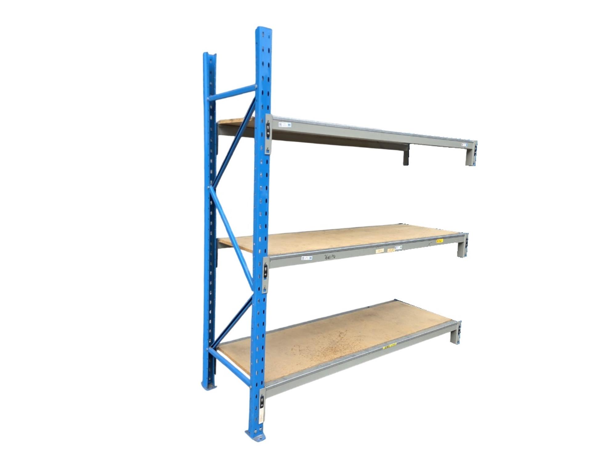 Set bestaande uit: 1x staander 244x76cm, voorgemonteerd, 6x ligger 212cm, 12x borgpen, 3x spaanplaat legbord 211,5x65cm