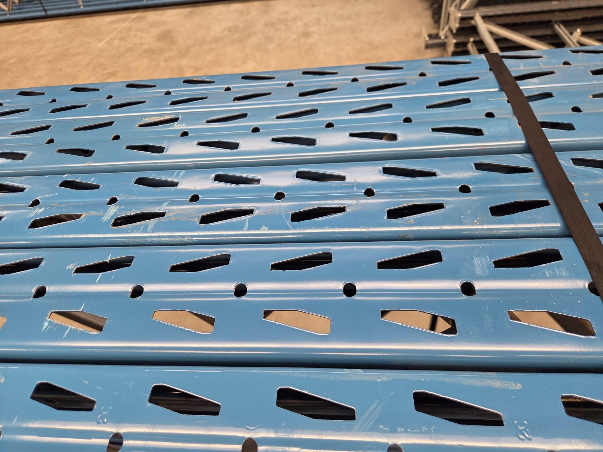 • Staander, gebruikt, afmeting: 8.900x1.050mm, profiel: 90x70mm, kleur: blauw, prijs €130,00 p/st ex