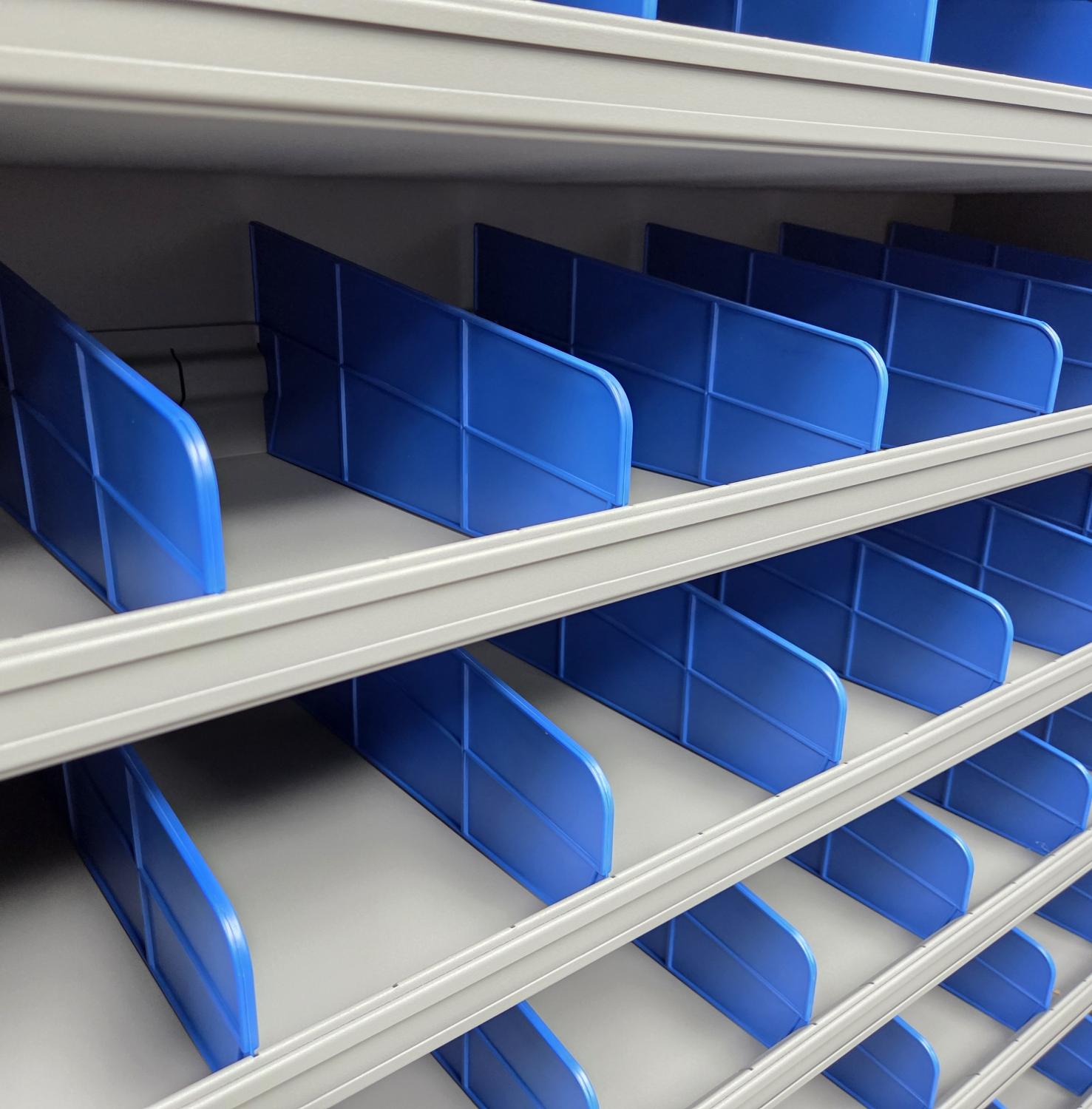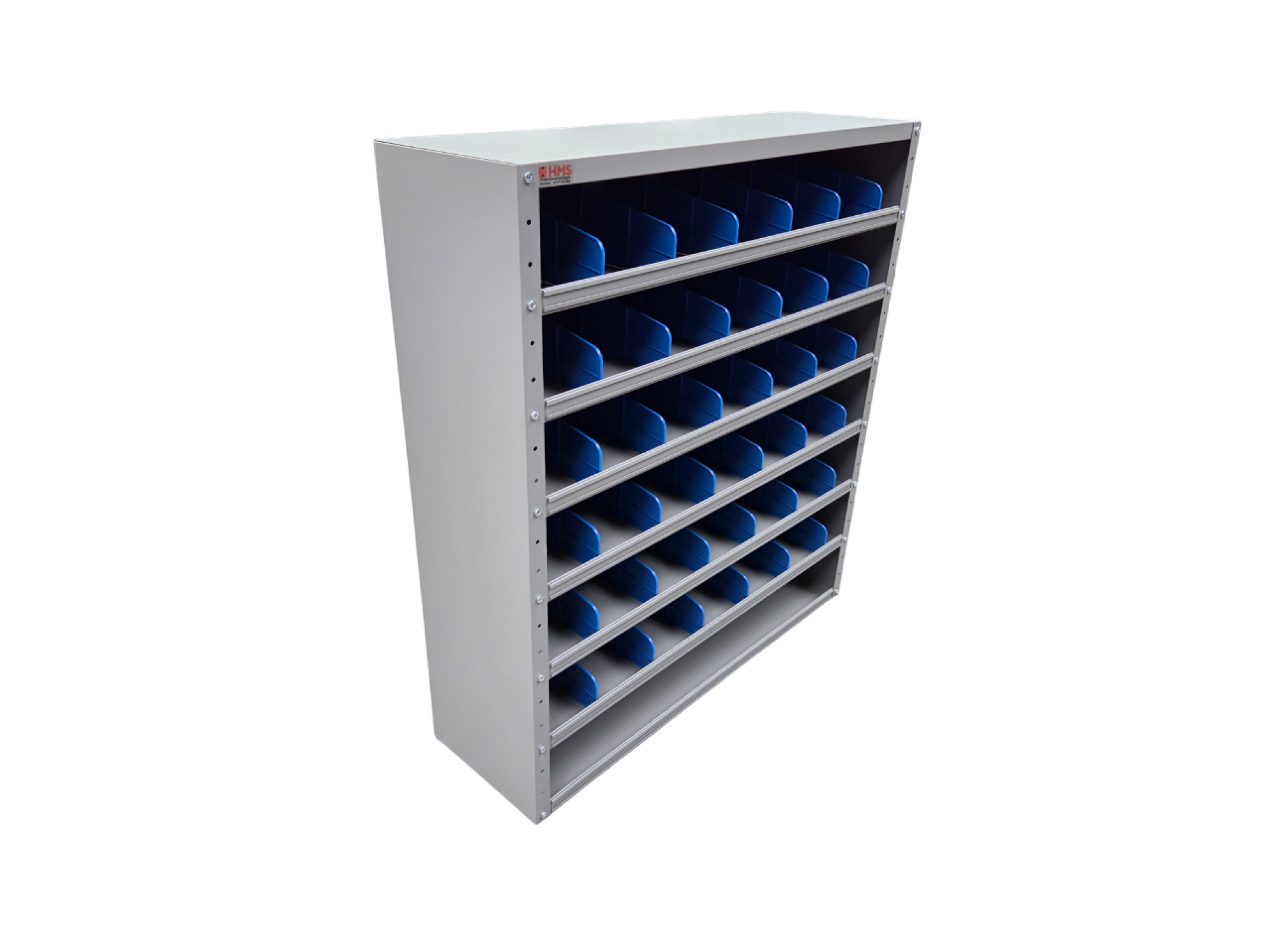 HC vakkenkast, nieuw, afmeting: 108x100x30cm, inclusief 36x kunststof tussenschot, 13 legborden, kleur: grijs (RAL7037)