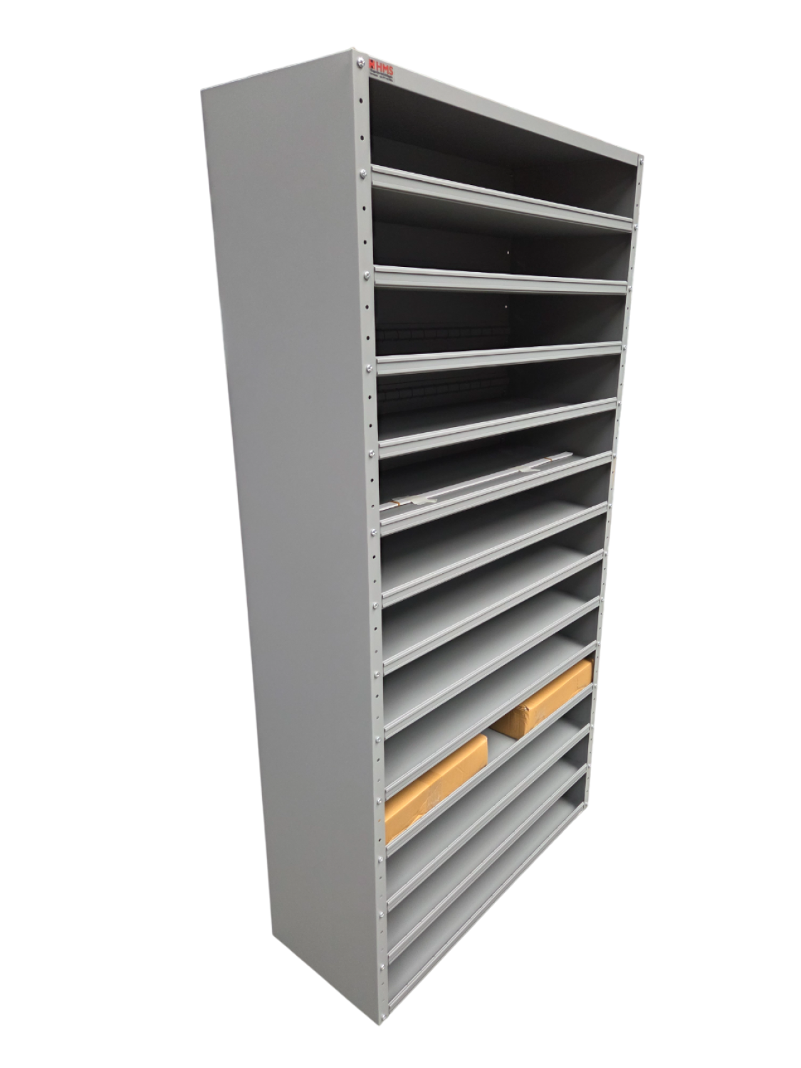 HC vakkenkast, nieuw, afmeting: 200x100x40cm, inclusief 72x kunststof tussenschot, 13 legborden, kleur: grijs (RAL7037)