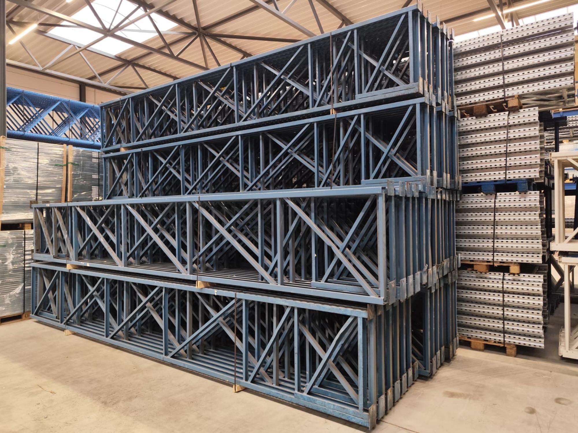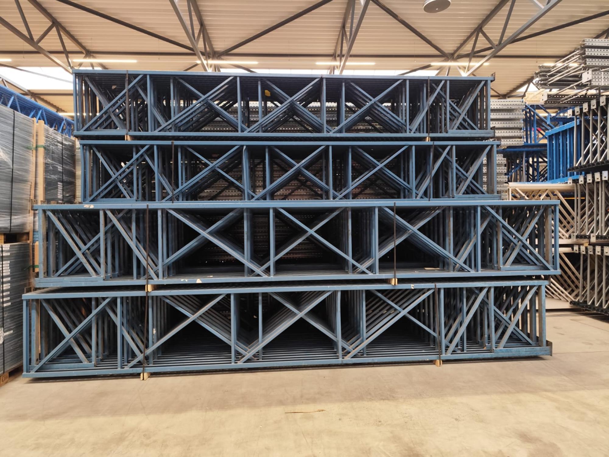 • Staander, gebruikt, afmeting: 5.850x870mm, profiel: 85x50mm, kleur: blauw, prijs €75,- p/st ex
