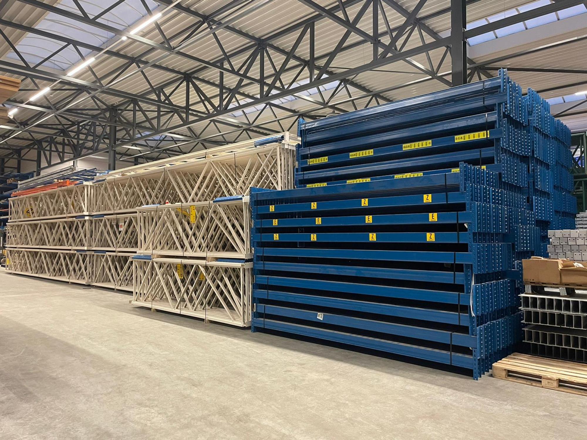 • Staander, gebruikt, afmeting: 6.000x1.100mm, profiel: 100x68mm, kleur: blauw, prijs €110,- p/st ex
