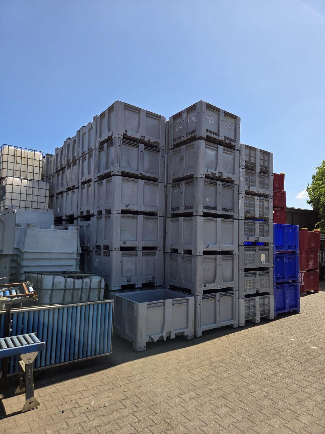 Palletbox, gebruikt, afmeting: 120x100x76cm, stapelbaar, kleur: grijs, zonder slede, niet 100% waterdicht