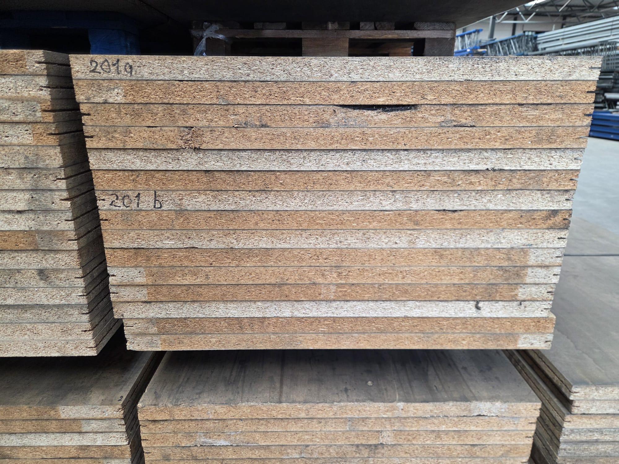 Spaanplaat legbord, afmeting: 241,5x89,5cm, dik: 38mm, let op: geen witte onderzijde, deels met groef aan lange zijde (zie foto)
